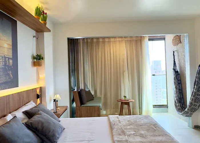 O hotel fica a uma distância de 10 minutos de carro do Mercado de Peixe Mucuripe e a Ponte dos Ingleses está a cerca de 25 minutos de distância caminhando. O Studio novo de alto padrão na Beira Mar de Fortaleza oferece proximidade com paisagens naturais como o Parque Estadual do Cocó (a 3.2 km) e o Jardim Japonês de Fortaleza (a 2.2 km). O Centro Dragão do Mar de Arte e Cultura está situado a uma distância de apenas 1.7 metros da propriedade. Os hóspedes encontrarão o ponto de ônibus to Cumbuco ao lado do estabelecimento, a aproximadamente 10 minutos de distância caminhando.